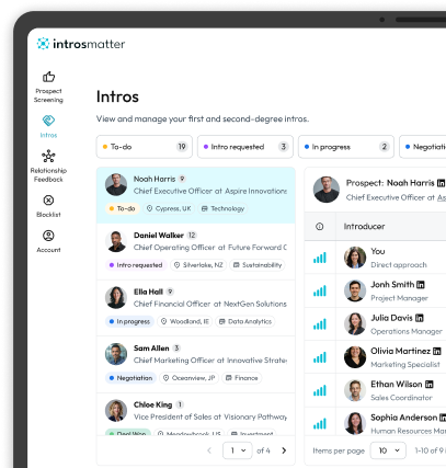 Track which prospects and introducers are the best fit for your business. Reject poor matches and improve future recommendations automatically as the algorithm learns from your input.